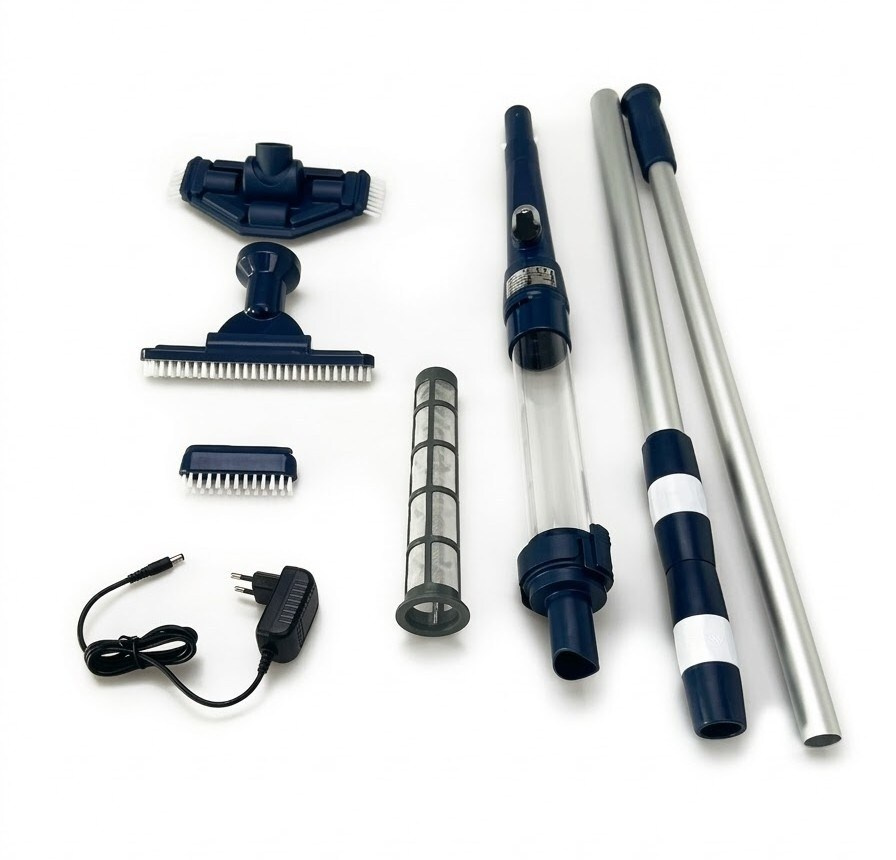 Der kabellose Staubsauger verfügt über einen 18-W-Motor mit einer Saugleistung von 30 l/min und eine einzigartige Autostart-Funktion beim Eintauchen. Tauchen Sie das Gerät einfach in Wasser ein und der Staubsauger wird sofort aktiviert. Der 4000-mAh-Lithium-Ionen-Akku ermöglicht einen Dauerbetrieb von bis zu 60 Minuten, was 20-30 Reinigungszyklen entspricht.