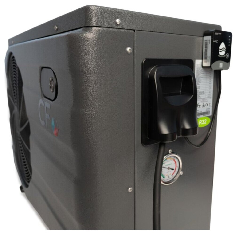Mit einem Geräuschpegel von 40-52 dB (zwischen einem Flüstern und einem Kühlschrank) ist die CF PROFI Invertor eine der leisesten Wärmepumpen auf dem Markt. Sie und Ihre Nachbarn werden den superleisen Betrieb zu schätzen wissen. Das Gerät bietet sowohl einen Poolwasser-Heiz- als auch einen Kühlmodus und lässt sich über ein LED-Display oder die Aqua Temp Mobile App steuern. Sie verwendet das umweltfreundliche Kältemittel R32, und die automatische Verdampferabtaufunktion steigert die Effizienz weiter und reduziert den Stromverbrauch. Die Wärmepumpe ist mit Anschlüssen für die Steuerung des Betriebs einer externen Pumpe mit einem Strom von bis zu 6 A ausgestattet.