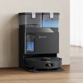 Der ECOVACS DEEBOT T30C OMNI Staubsaugerroboter bietet die ultimative wartungsfreie Reinigung dank der ZeroTangle™ 3.0 Technologie, die eine Hauptbürste mit dreifacher V-Struktur und eine speziell entwickelte ARClean Seitenbürste kombiniert. Das stromlinienförmige Design der innovativen einarmigen Zweiborsten-Seitenbürste reduziert durch die Minimierung der Kontaktpunkte das Verheddern von Haaren drastisch. Die nach innen gewölbte Struktur der Gummiblätter nutzt die Zentrifugalkraft, um die Haare direkt in die Ansaugöffnung zu fegen. Die um 45° abgewinkelten Borsten der Hauptbürste nehmen effektiv Schmutz auf, während die Gummiblätter verhindern, dass Haare tief zwischen die Borsten eindringen. Die Hochgeschwindigkeitsrotation erzeugt einen Zykloneffekt, der die Haare in die Mitte der Bürste führt, wo die Zähne des abnehmbaren V-förmigen Kammes die Haare mit einer Verfilzungsrate von 0 % entwirren.