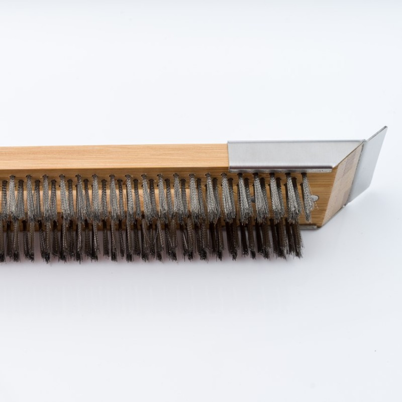 Solo Stove Edelstahl-Borstenbürste für die perfekte Pflege von Keramik-Pizzasteinen. Entfernt effektiv verbrannte Essensreste. Der Edelstahlschaber auf der anderen Seite der Bürste ist dann perfekt für die Entfernung größerer verbrannter Rückstände. Der lange Holzgriff liegt gut in der Hand. Praktisches Band zum Aufhängen.