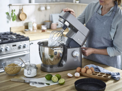 Die Küchenmaschinen von Kenwood sind um über 20 spülmaschinenfeste Einzelteile erweiterbar. Neben Gemüseschneider, Entsafter, Zitruspresse und Mixer sind z.B. auch ein Fleischwolf, eine Pastawalze oder ein Schnitzelwerk erhältlich