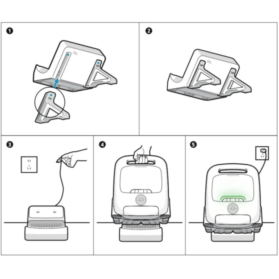 Durch seine aufrechte Position ist er leicht zu handhaben, während sein kompaktes Design Platz spart und den Poolbereich aufgeräumt hält. Außerdem schützt sie den Roboter, wenn er nicht in Gebrauch ist. Die Installation ist schnell und einfach, ohne Werkzeug oder komplizierte Einstellungen.