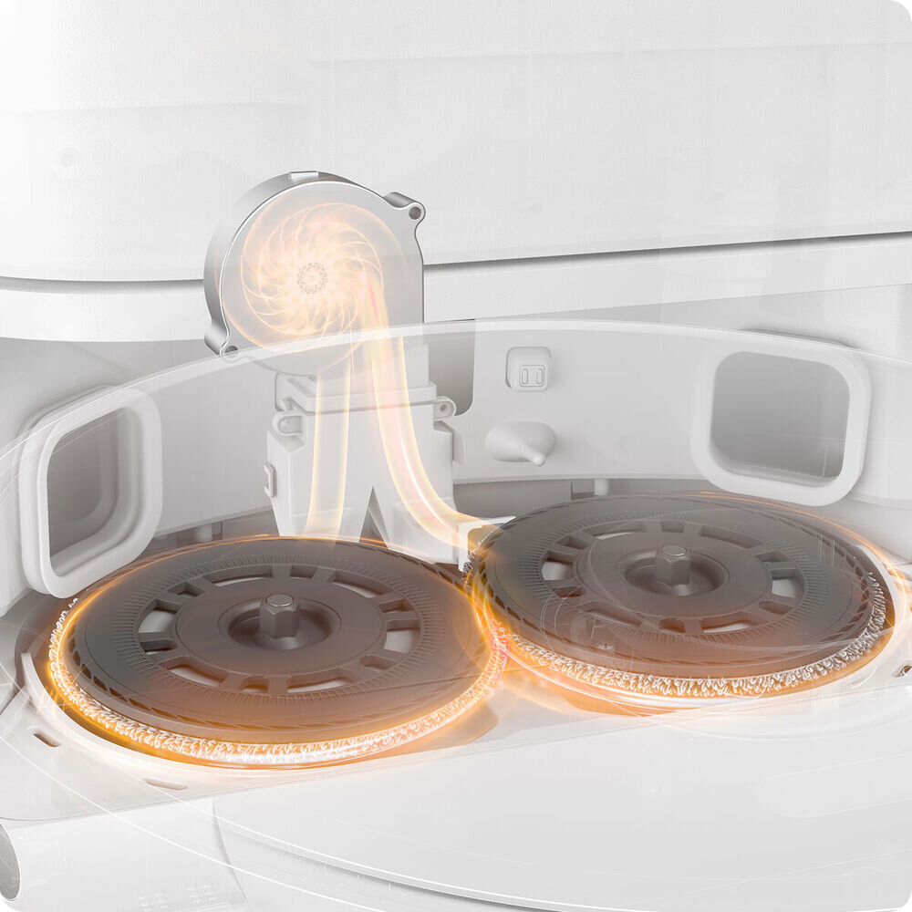 Die MaxiReach™ Mop Tech mit einem automatisch ausfahrenden Wischmopp hilft dem E40 Ultra, auch in enge Räume zu gelangen und tief unter Möbeln und in engen Ecken zu wischen, die bis zu 5 cm von der Wand entfernt sind. Die verwicklungssichere Seitenbürste ist mit einem 45°-Gummistreifen ausgestattet, der mit der Bürstendrehung zusammenarbeitet: Wenn sich die Bürste dreht, leitet der Gummistreifen die Haare aktiv nach unten, löst sie von der Bürste und sorgt für einen reibungslosen, verwicklungsfreien Betrieb.