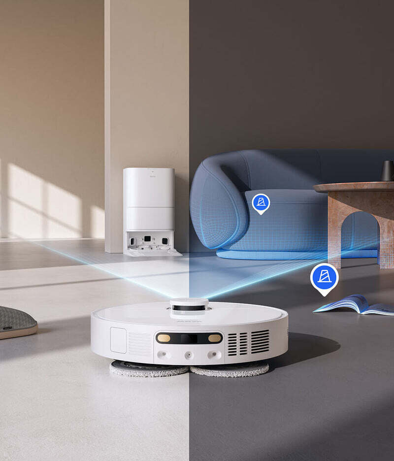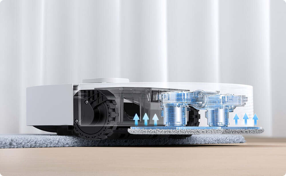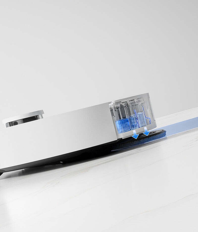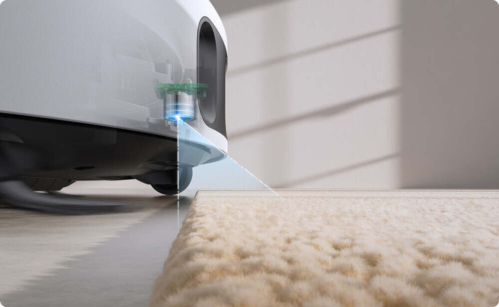 Die Ultraschall-Teppicherkennung in Verbindung mit dem automatischen 10,5-mm-Mopphub schützt Ihre Teppiche vor Feuchtigkeit und hält sie trocken. Bei der Reinigung von Hartböden nutzt der Roboter die Ultraschall-Teppicherkennung und eine erhöhte Saugleistung, um selbst die hartnäckigsten Flecken effektiv zu entfernen.