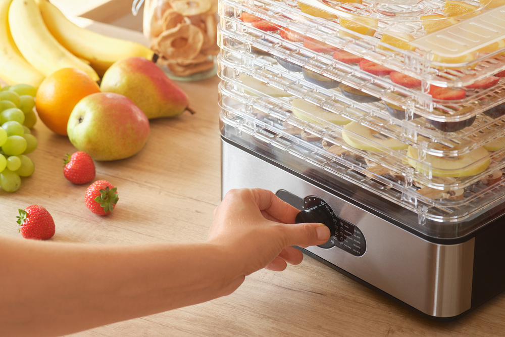 Der Trockner bietet 8 Temperatureinstellungen von 35-70 °C für eine optimale Anpassung an die verschiedenen Arten von Zutaten. Er eignet sich für eine breite Palette von Lebensmitteln - von Obst, Gemüse und Pilzen bis hin zu Kräutern, Gewürzen, Fleisch, Fisch oder selbstgemachten Teemischungen. Der transparente Deckel und die Platten ermöglichen eine einfache Kontrolle des Trocknungsvorgangs, ohne dass man sie anfassen muss.