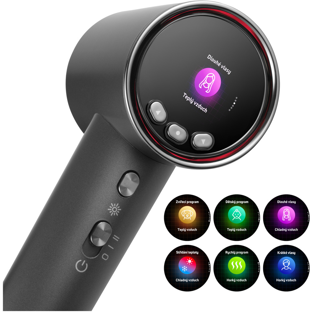 Der Trockner verfügt über einen professionellen BLDC-Motor mit einer maximalen Drehzahl von 110.000 U/min, der für eine effiziente und schnelle Haartrocknung sorgt. Dank des LCD-Farbdisplays haben Sie einen Überblick über den gewählten Modus und die Einstellungen. Die Plasma-Ionisierungstechnologie schützt die Haarstruktur vor Schäden und sorgt für ein gesundes Aussehen nach jedem Föhnen.