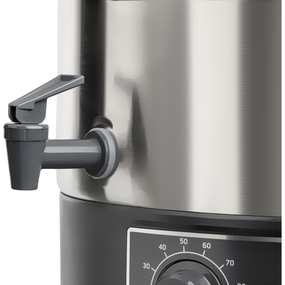 Die SPP 2200SS ist nicht nur auf die Konservenherstellung beschränkt, sondern dient auch als topf in voller Größe und Brühgruppe. Seine Mobilität und Unabhängigkeit vom Herd machen ihn ideal für den Einsatz im Ferienhaus oder bei größeren Veranstaltungen. Er ermöglicht die Zubereitung einer breiten Palette von Gerichten, von Soßen bis hin zu Knödeln und Getränken wie Nudeln, Glühwein oder Kaffee. Praktisch auslaufhahn für bequemes Ausgießen von Flüssigkeitenauch dicke Speisen können nach Abnehmen des Deckels serviert werden. Hygienischer Edelstahl sorgt dafür, dass das Kochgeschirr bei jedem Gebrauch wie neu ist.