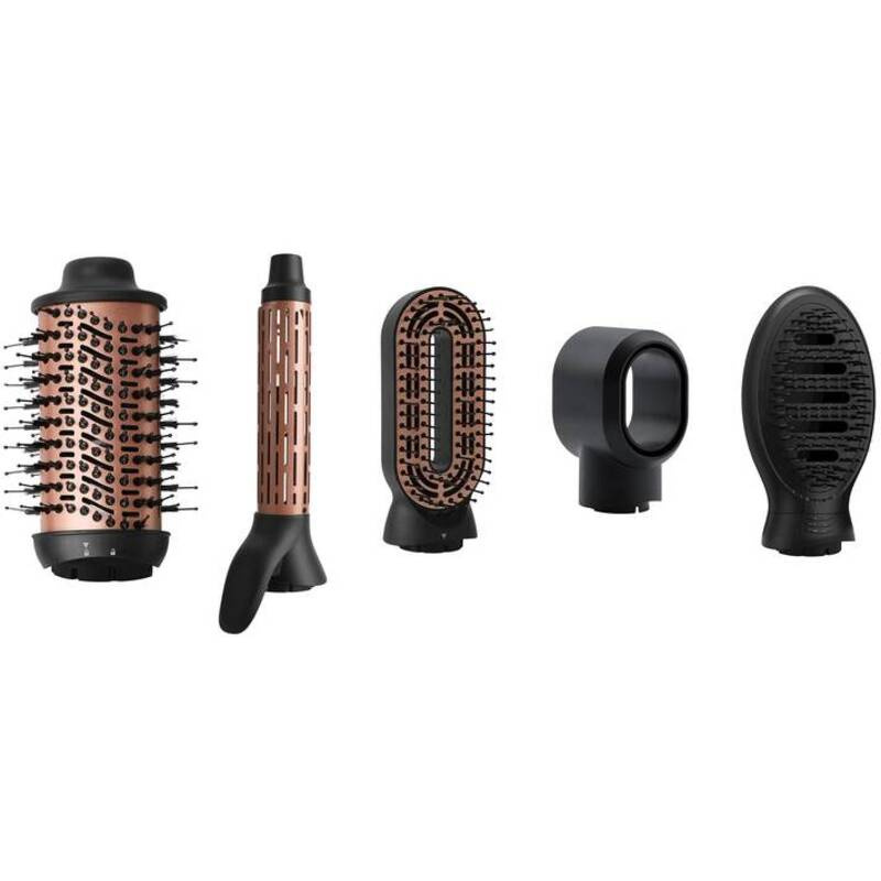 - Anzahl der Anhänge: 5 (Haarbürste, Konzentrator, Lockenstab, Bügelbürste und ovale Bürste)
