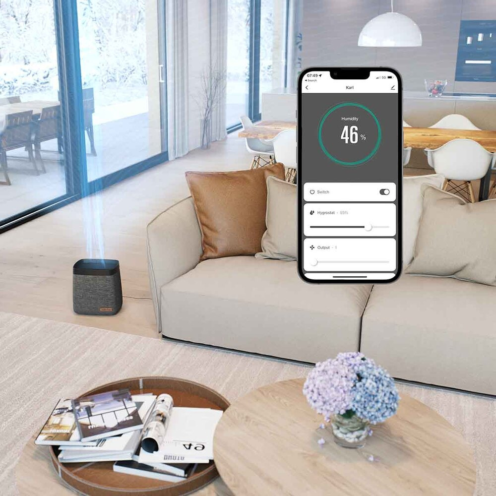 Mit der Stadler Form Mobile App können Sie alle Funktionen des Karl Luftbefeuchters steuern und die aktuelle Luftfeuchtigkeit in Ihrem Zuhause jederzeit und überall überwachen. Stellen Sie die gewünschte Luftfeuchtigkeit, den Timer, den Automatikmodus oder die Kindersicherung mit einem einzigen Klick über die App ein.