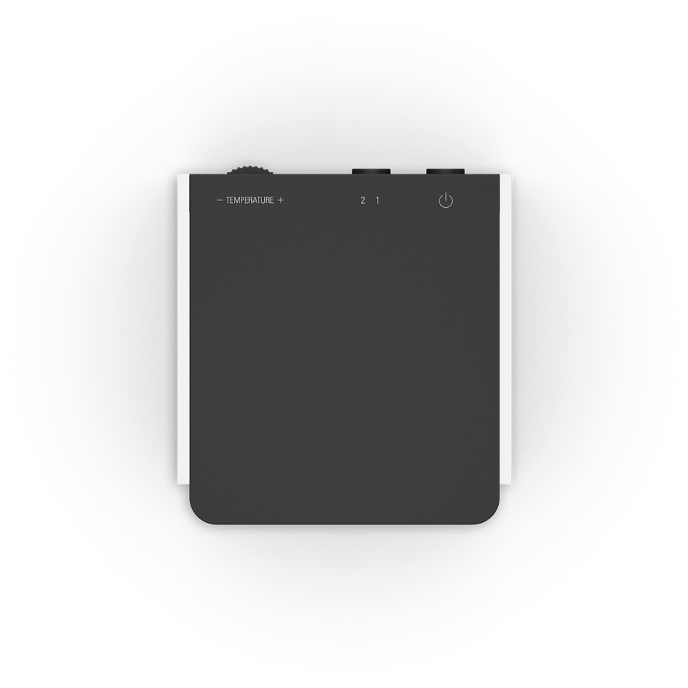 Den Service von Sam Little kann jeder bedienen. Auf der Rückseite des Heizgeräts befinden sich zwei Tasten zum Ein- und Ausschalten und zur Auswahl einer von zwei Leistungsstufen. Mit dem Drehrad wird einfach die gewünschte Raumtemperatur eingestellt, die von dem eingebauten Thermostat überwacht wird.