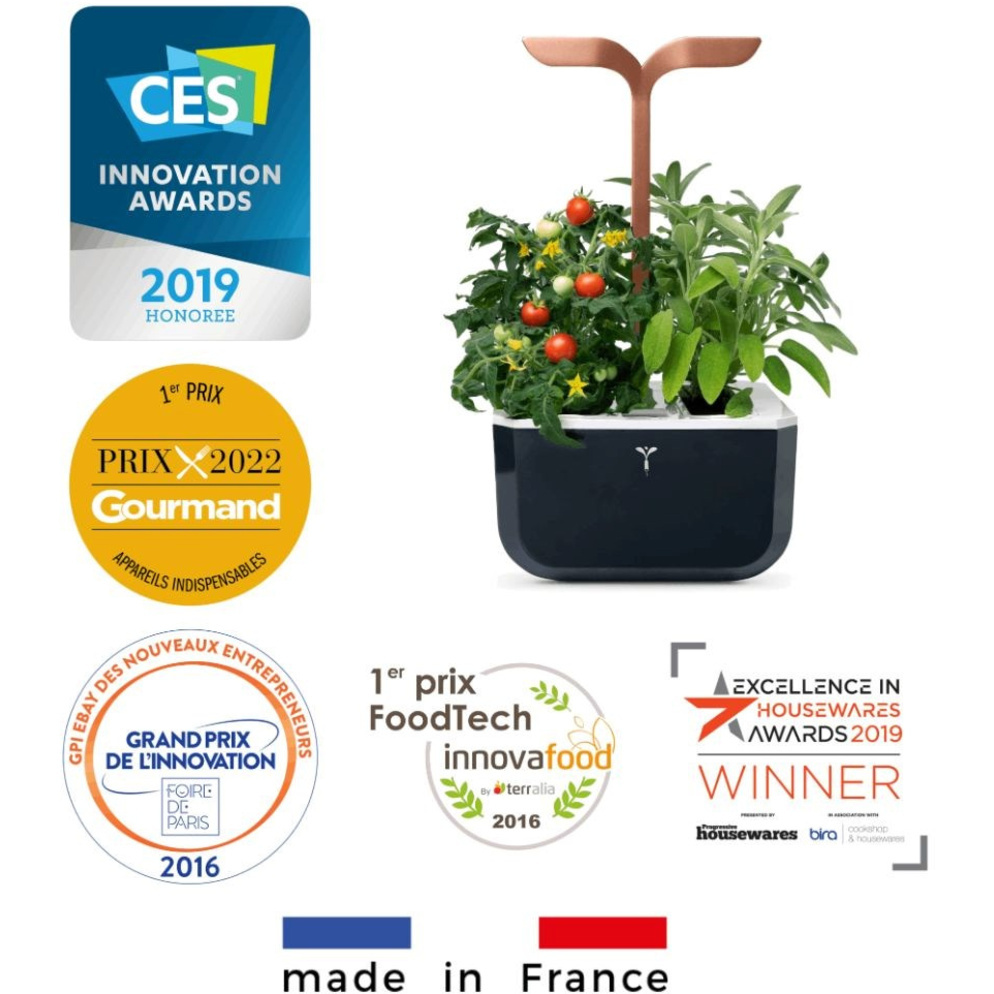 Der Exky Smart Garden ermöglicht es Ihnen, das ganze Jahr über mit minimalem Aufwand frische Kräuter, Gemüse, Früchte und Blumen anzubauen. Der Garten überwacht die mögliche Entzündung des Umgebungslichts und reguliert seine eigene Verbrennung entsprechend, um die Pflanzen vor Verbrennungen zu schützen. Er eignet sich daher sowohl für Bereiche mit direkter und indirekter Sonneneinstrahlung als auch für dunkle Räume. Er verbindet französische Handwerkskunst mit moderner Technik.