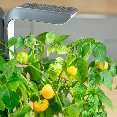 Halten Sie die Paprika vorsichtig in einer Hand und schneiden Sie mit unserer Mini-Schere den Stiel knapp über dem Kelch (dem grünen Teil an der Unterseite der Paprika) ab. Achten Sie darauf, die Paprikaschoten beim Ernten nicht zu beschädigen.