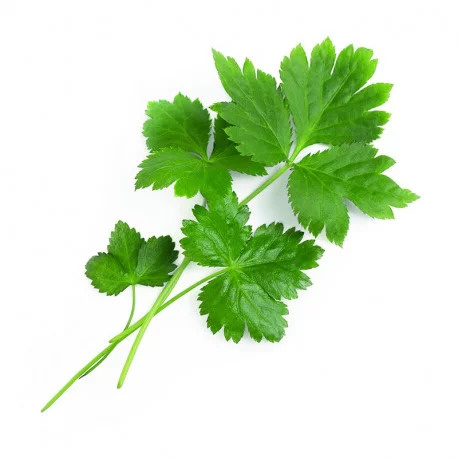 Die japanische Mitsuba-Petersilie ist eine seltene Petersilie mit einem ungewöhnlichen Geschmack. Sie ist ein aromatisches Kraut, das reich an Vitaminen, Kalium und Eisen ist. Die Blätter dieser japanischen Petersilie eignen sich zum Kochen und werden in Suppen und Salaten verwendet. Die Stängel können wie Sellerie blanchiert werden.